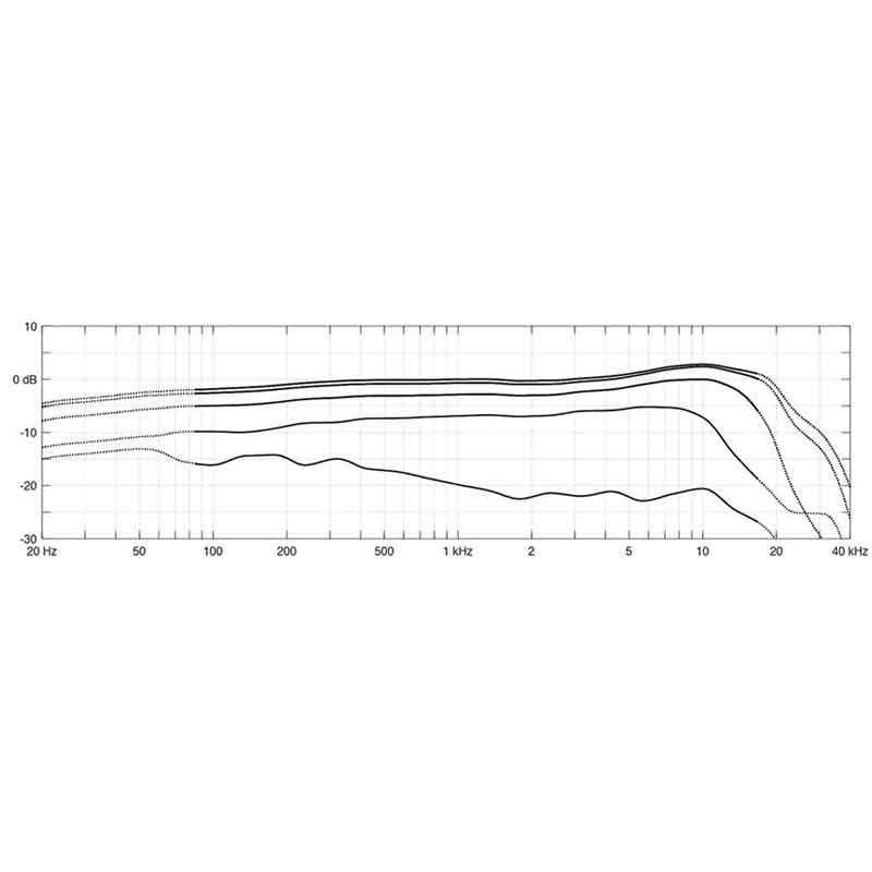 Частотный диапазон 20 Гц – 20 кГц (эффективная полоса 80 Гц – 17 кГц с мягким подъемом +2 дБ в диапазоне 10–12 кГц),