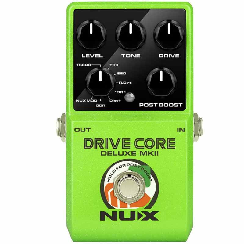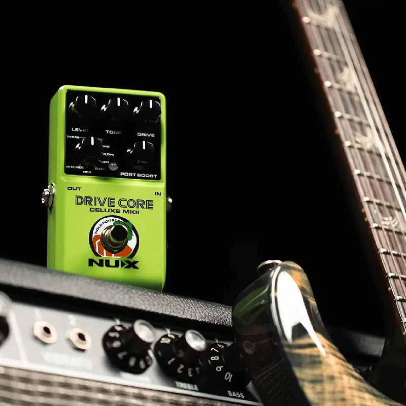 NUX Drive Core Deluxe MKII – гитарная педаль овердрайва, известная также как Wasabi Drive, сочетающая в себе восемь легендарных типов овердрайва в одном компактном корпусе. От теплых блюзовых оттенков Texas до яркого Nashville Overdrive – каждый стиль звучит подлинно благодаря 100% аналоговой цепи и высококачественным реле, гарантирующим естественную динамику и чистоту сигнала.