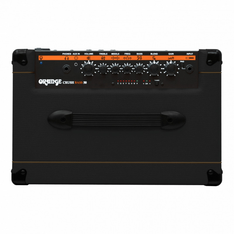 Как и остальные усилители серии Crush Bass, эта 50-ваттная модель обеспечивает смелые и пробивные низкие частоты благодаря аналоговой схеме и портированному корпусу. Чрезвычайно гибкая секция активного эквалайзера включает в себя параметрическую середину, позволяющую музыканту формировать свой звук без ограничений. Интерактивные регуляторы Gain и Blend позволяют легко создавать огромные тембры в стиле "bi-amp", добавляя дополнительные гармоники и разные уровни зернистости к основному звуку. Их можно также включать/выключать дистанционно с помощью дополнительного футконтроллера. Буферизированная петля эффектов, встроенный тюнер, Aux In и выход для наушников со схемой Cabsim от Orange .