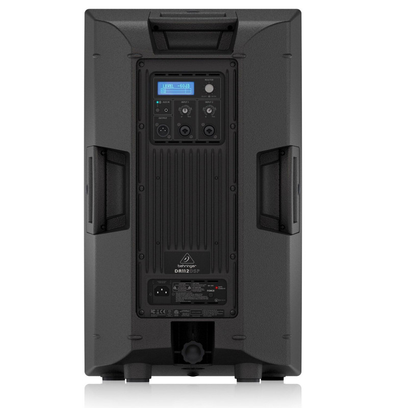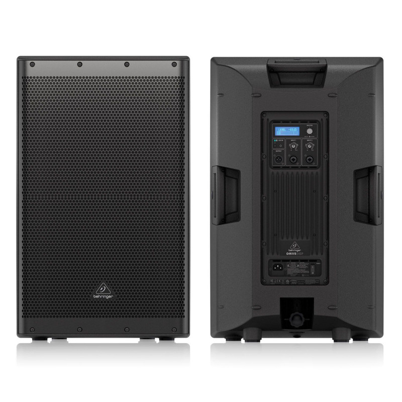 BEHRINGER DR115DSP - активная акустическая система, максимальная выходная мощность: 1400 Вт, тип усилителя: класс D + AB, регуляторы: вращаемый пуш-энкодер, регуляторы гейна, НЧ динамик: 1 х 15" (381 мм) НЧ драйвер, ВЧ динамик: 1 х 1.75" (44.4 мм) высокочастотный компрессионный драйвер, частотный диапазон: 45 Гц – 19 кГц (±3 дБ), номинальная дисперсия: 90° х 60°, максимальный уровень звукового давления: 136 дБ, кроссовер: 2-полосный, активный, лимитер: независимый ВЧ, НЧ, защита: короткое замыкание, перегрев, вход 1/2: 2 x XLR/1/4" TRS комбо джека (серво-балансные).