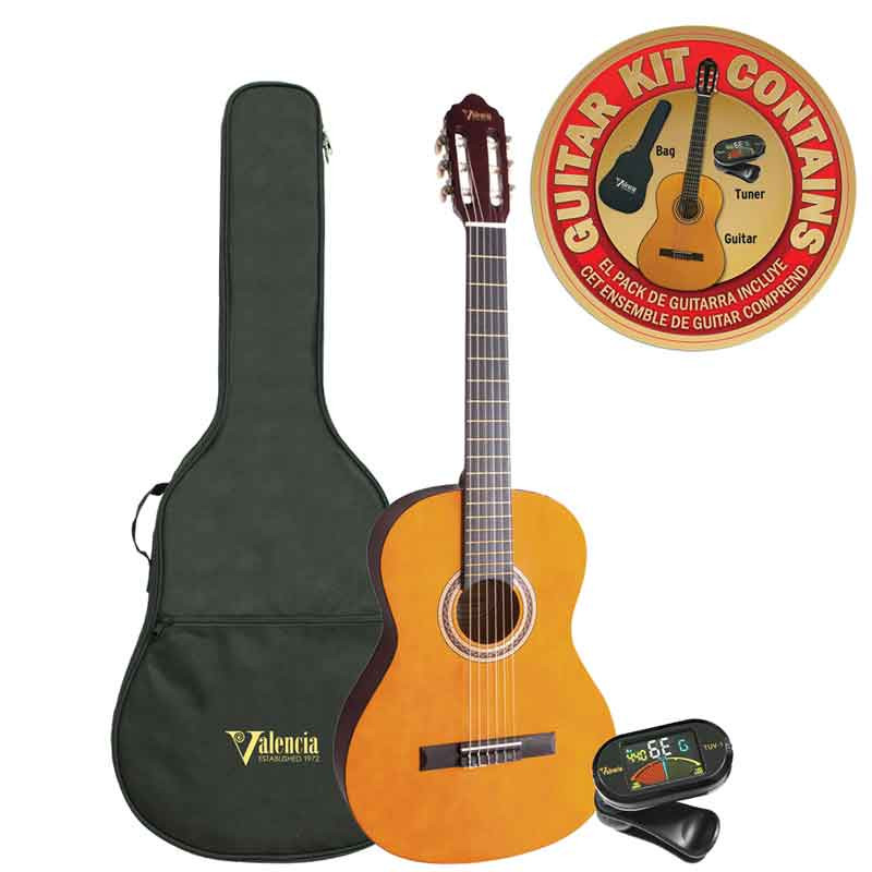 Valencia VC103K 3/4 – классическая гитара 3/4, комплектуемая чехлом и тюнером. Эта классическая гитара, которая входит в начальную 100-ю серию производителя и поставляется в полноценном комплекте, ориентированном на начинающих музыкантов. Литера "K" в названии указывает на то, что это комплект (Kit), обычно включающий чехол и тюнер. Благодаря конструкции и материалам (Липа) обеспечивает чистый и резонансный голос, мягкий в верхних частотах, идеально подходящий для классического стиля игры. Полноразмерная мензура (650 мм) позволяет гитаристам развивать правильную классическую технику игры на нейлоновых струнах. Valencia VC104K BK – это экономически выгодный и полностью оснащенный комплект для тех, кто только начинает учиться играть на классической гитаре.