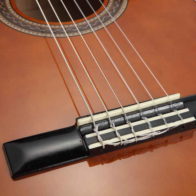 Уменьшенная мензура и ладовые отметки, 580 мм позволяет развивать правильную классическую технику игры на нейлоновых струнах. Наличие ладовых меток со стороны грифа помогает новичкам легче ориентироваться.