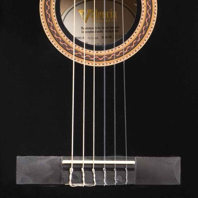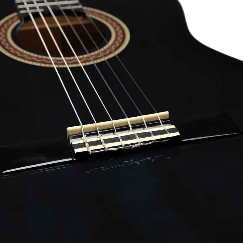 Полноразмерная мензура и ладовые отметки, 650 мм мензура позволяет развивать правильную классическую технику игры на нейлоновых струнах. Наличие ладовых меток со стороны грифа помогает новичкам легче ориентироваться.
