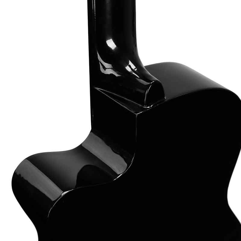 Блестящий черный цвет (BK) и лакированное покрытие, черный цвет в сочетании с глянцевым лаком придает гитаре элегантный, эстетический и привлекательный вид, что важно для начинающих.
