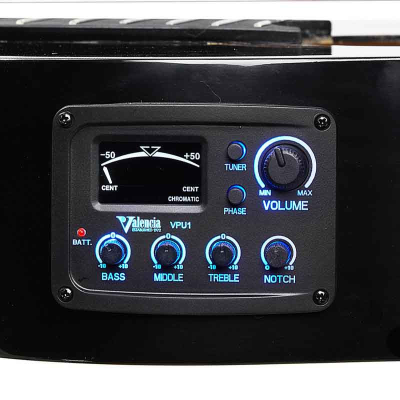 Valencia VC104TCE BK 4/4 – классическая гитара 4/4 с вырезом и подключением в черном цвете с лакированным покрытием. Эта классическая гитара начального уровня, отличный выбор для музыкантов, начинающих знакомиться с миром музыки, которым нужна классическая гитара, способна не только для акустических занятий, но и для выступлений. Встроенная электроника со срезом корпуса делает ее универсальной для сцены и студии, а глянцевый черный цвет придает ей эстетический вид.
