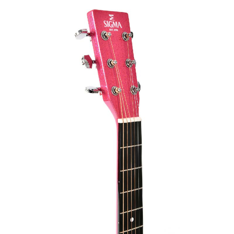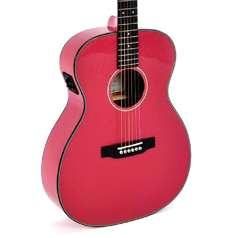 Sigma 000M-1E-MFP – акустическая гитара с электроникой Fishman Presys II, компактная и сбалансированная, для тех, кто хочет выделяться и в звучании, и в стиле. Форма 000 с 14 ладами вне корпуса обеспечивает динамику, четкий отклик и четкую артикуляцию: в фингерстайле или аккомпанементе. Но главная фишка – это глянцевое покрытие Metallic Flake Pink. Не пастельно-розовое, а электризирующее, блестящее и максимально провокационное. Гитара, которая говорит: "Я здесь - и я не играю по правилам."