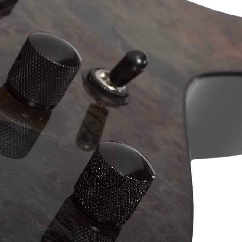 Характерный S-образный контур и скульптурный прикрученный каблук обеспечивают бескомпромиссный доступ к 24 ладам, раскинувшимся на 25,5-дюймовой мензуре.