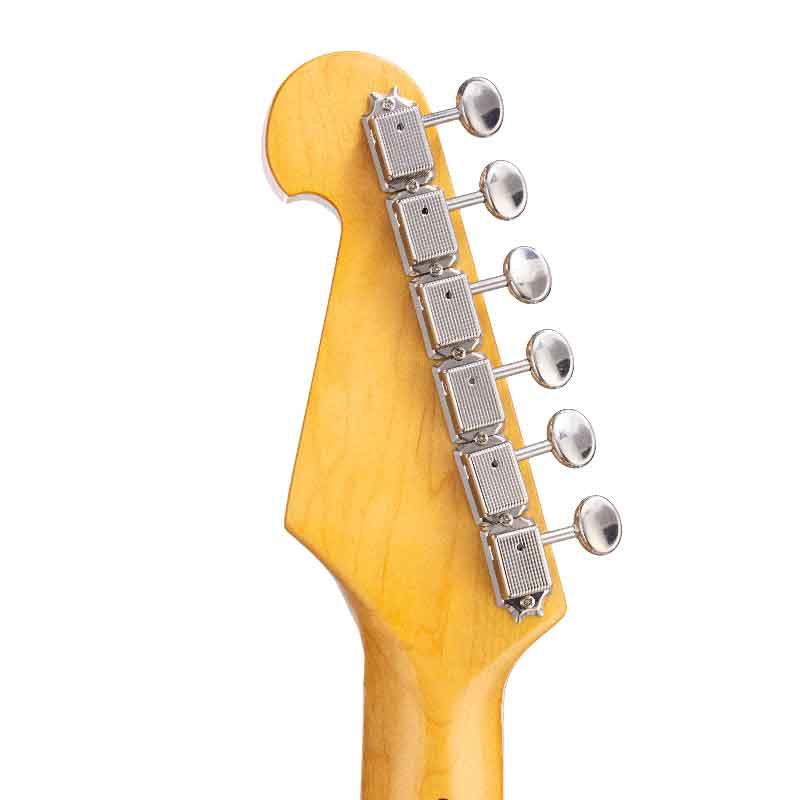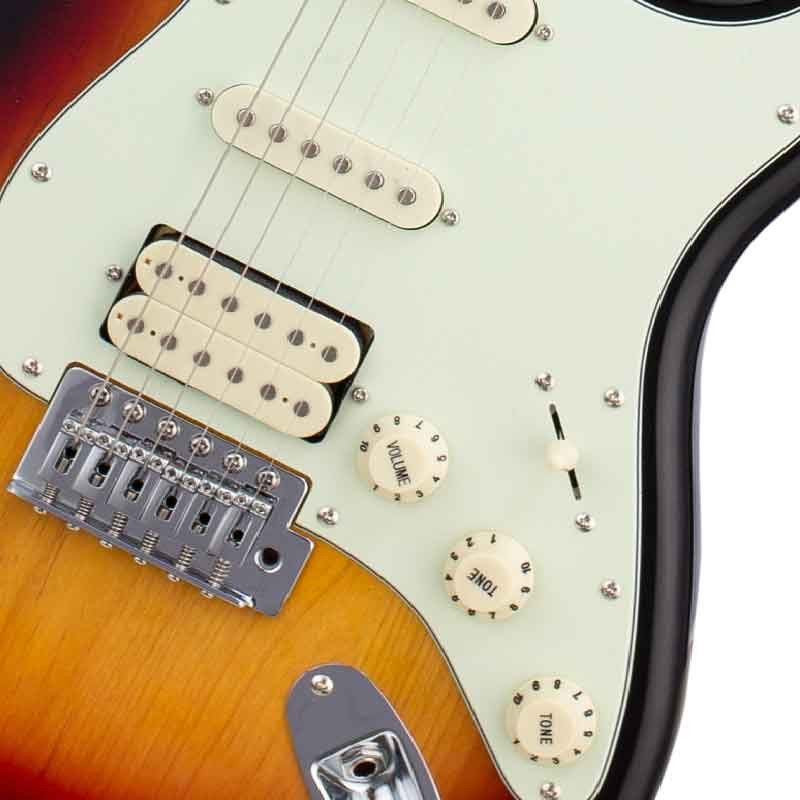 SX SST62+/HSS/3TS – электрогитара изготовлена в классическом стиле, с винтажным видом, но модернизированной конфигурацией звукоснимателей. Эта гитара сочетает винтажный вид 60-х с современной универсальностью HSS-конфигурации, что делает ее очень гибкой для разных музыкальных стилей. Классический дизайн корпуса (типа Stratocaster), вдохновленный моделями 60-х. Конфигурация звукоснимателей HSS Humbucker-Single-Single, это ключевая особенность этой модели – хамбакер в бридже, сингл в центре и сингл в неке. Это обеспечивает универсальность звучания, объединяя мощный рок-тон хамбакера с чистыми тонами синглов.