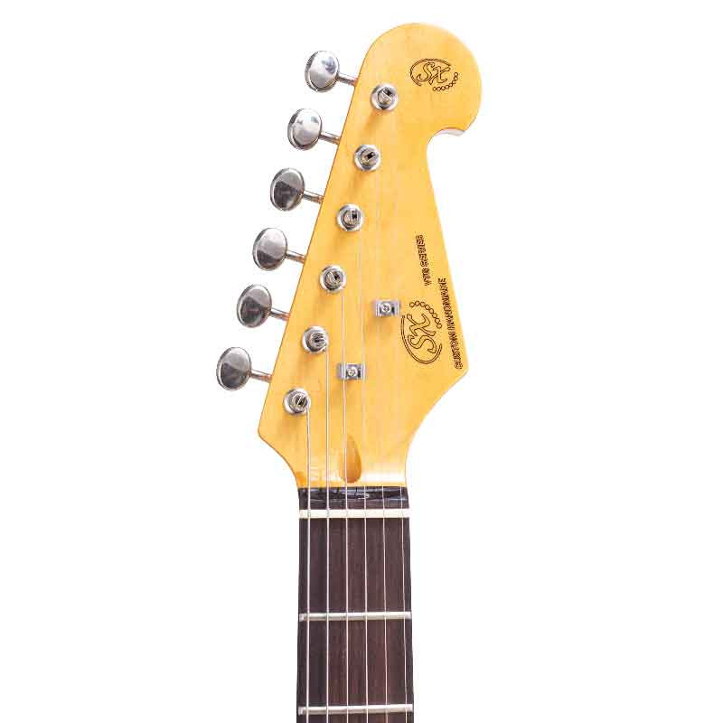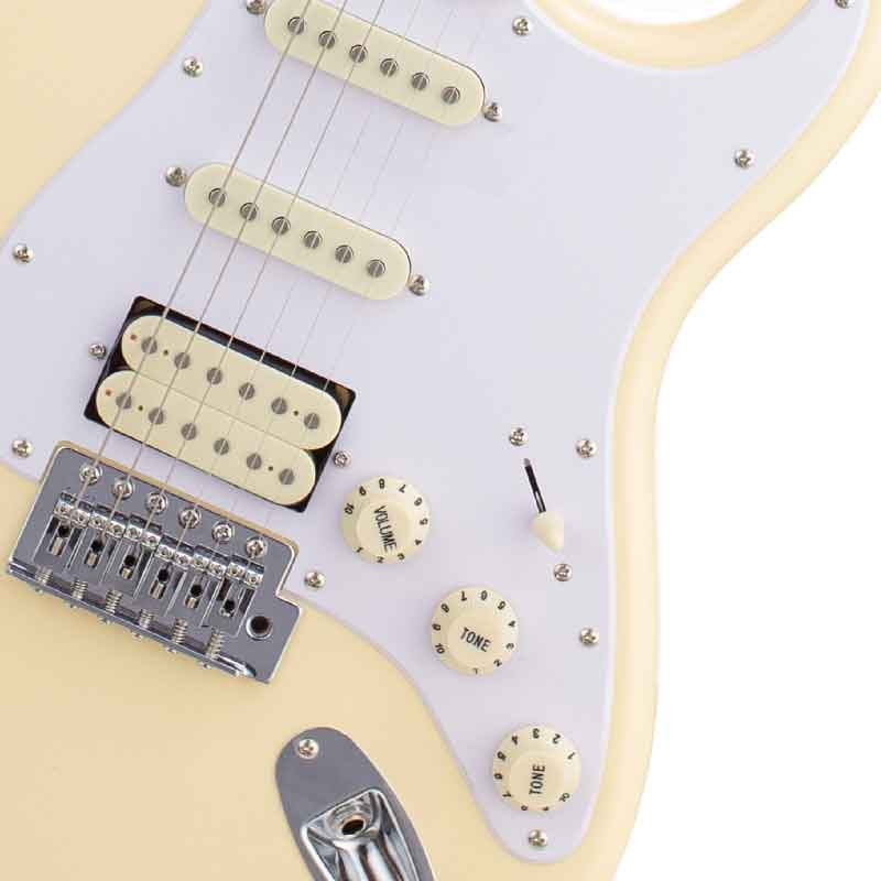 SX SST62+/HSS/VWH – электрогитара изготовлена в классическом стиле, с винтажным видом, но модернизированной конфигурацией звукоснимателей. Эта гитара сочетает винтажный вид 60-х с современной универсальностью HSS-конфигурации, что делает ее очень гибкой для разных музыкальных стилей. Классический дизайн корпуса (типа Stratocaster), вдохновленный моделями 60-х. Конфигурация звукоснимателей HSS Humbucker-Single-Single, это ключевая особенность этой модели – хамбакер в бридже, сингл в центре и сингл в неке. Это обеспечивает универсальность звучания, объединяя мощный рок-тон хамбакера с чистыми тонами синглов.