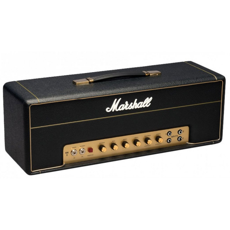 MARSHALL 1987X-01 PLEXI VINTAGE REISSUE 50W HEAD - усилитель в формате "голова", ламповый. Переиздание Plexi 70x, мощность 50 Ватт, два канала, регулировки Presence, bass, middle, treble, high treble/loudness I, normal/loudness II, лампы -2 x ECC83, 1 x ECC83 (phase splitter) и 2 x EL34, петля эффектов.