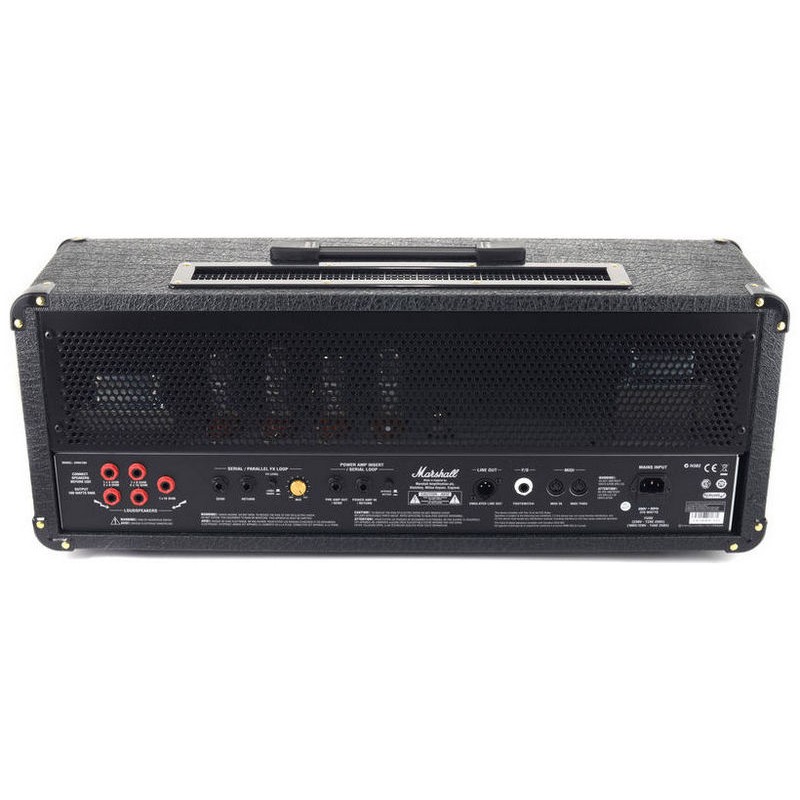 MARSHALL JVM410H - ламповый усилитель для электрогитары в формате головы, мощность: 100 Вт, петля эффектов: есть, количество каналов: 4, эквалайзер: 3-полосный, управление: канал OD 1: Volume, Bass, Middle, Treble, Gain; Канал OD 2: Volume, Bass, Middle, Treble, Gain; канал Clean: Volume, Bass, Middle, Treble, Gain; Канал Crunch: Volume, Bass, Middle, Treble, Gain; Master: Master 1, Master 2, Resonance, Presence; Reverb: Rvb OD 1, Rvb Clean, Rvb OD 2, Rvb Crunch; Переключатели: OD 1 Mode, OD 2 Mode, Clean Mode, Crunch, Reverb On/Off, Master On/Off, Footswitch/MIDI, FX Loop On/Off, Bypass/Active, Standby: On/Off, Power: On/Off, лампы: 5 x ECC83; 4 x EL34, входы: 1 x 1/4" jack instrument input, MIDI In, Footswitch, выходы: 1 х XLR - Line Out; 2 x Jack (1/4") - Send; 5 x Jack (1/4") - Loudspeakers; MIDI, совместимые фут-контроллеры: PEDL-91005 (в комплекте), цвет: чёрный, MIDI интерфейс; эффекты: Digital reverb, гарантия: 12 месяцев, размеры: 740 х 310 х 215 мм, вес: 22 кг.