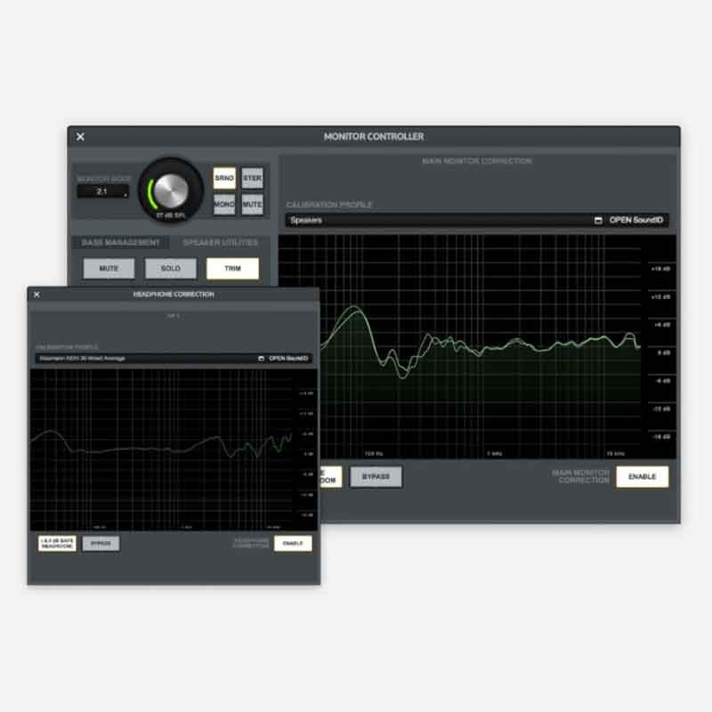 Калибровка колонок: Коррекция частотной характеристики мониторов и акустики комнаты (с помощью измерительного микрофона и приложения SoundID Reference Measure). Поддерживаются форматы от стерео до многоканальных систем, включая Dolby Atmos (до 9.1.6 в зависимости от модели Apollo X).