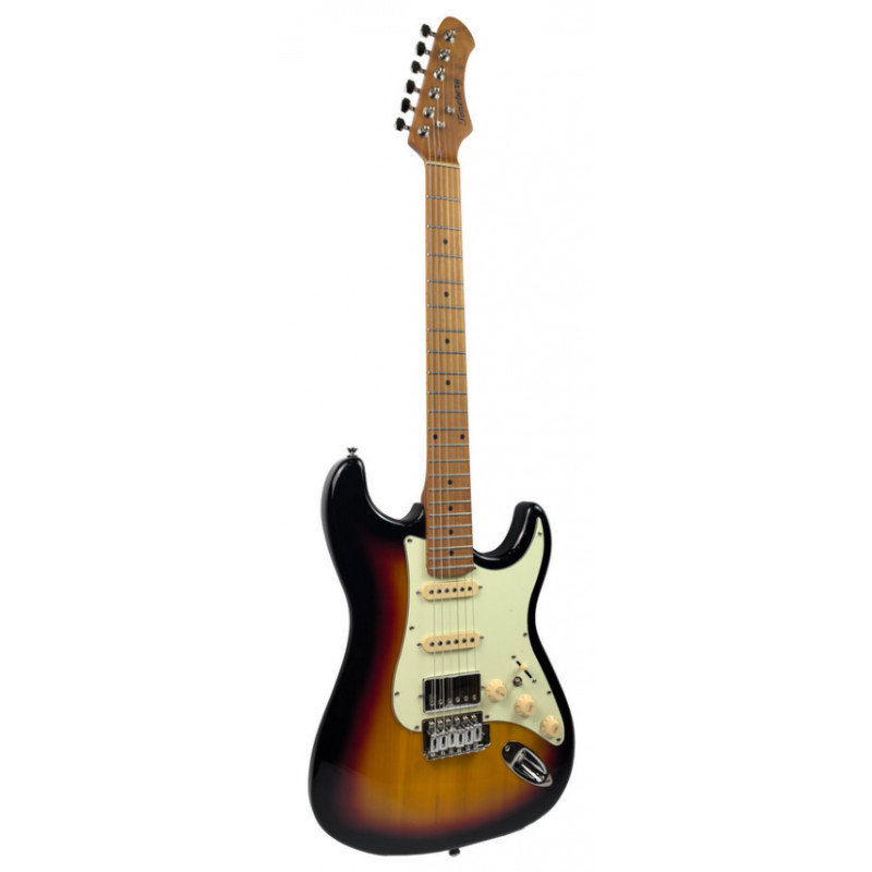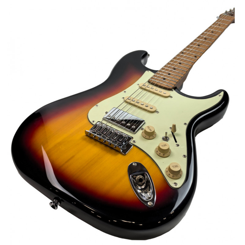 Легкий корпус из тополя обеспечивает комфорт во время игры и сбалансированный тон, а гриф и накладка из термообработанного клена придают стабильность, улучшают резонанс и дарят уверенность в каждой ноте. Конфигурация звукоснимателей S-S-H делает инструмент универсальным: от кристально чистого звучания для джазовых импровизаций до насыщенной перегрузки для роковых рифов.