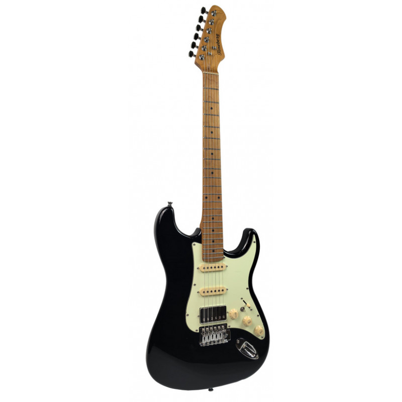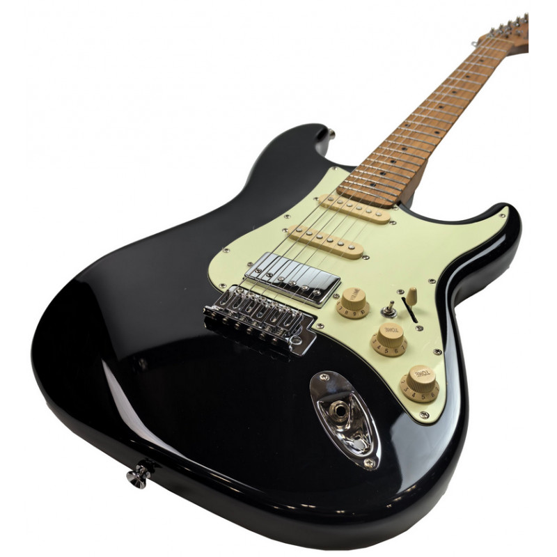 Легкий корпус из тополя обеспечивает комфорт во время игры и сбалансированный тон, а гриф и накладка из термообработанного клена придают стабильность, улучшают резонанс и дарят уверенность в каждой ноте. Конфигурация звукоснимателей S-S-H делает инструмент универсальным: от кристально чистого звучания для джазовых импровизаций до насыщенной перегрузки для роковых рифов.