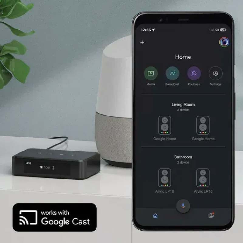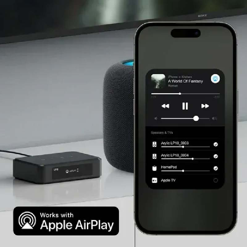 Arylic LP10 Wireless Music Streamer with GoogleCast - компактний мережевий аудіо-програвач нового покоління для бездротового стрімінгу музики з популярних онлайн-сервісів та локальних джерел. Працює через Wi-Fi, Bluetooth і Ethernet, підтримує високоякісне відтворення до 24bit/192kHz. Призначений для оновлення звичайної аудіосистеми або активної акустики, надаючи їм підтримку стрімінгу з AirPlay 2, Spotify Connect, Tidal, Google Cast, DLNA, а також відтворення музики з USB-накопичувачів чи локальної мережі.