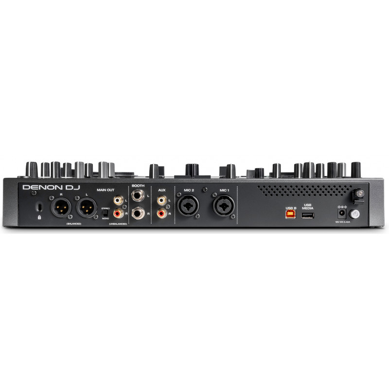 - Професійні входи та виходи (балансні XLR Main Out, RCA Out, ¼” Booth Out, RCA Aux In, 2 комбіновані Mic In)
