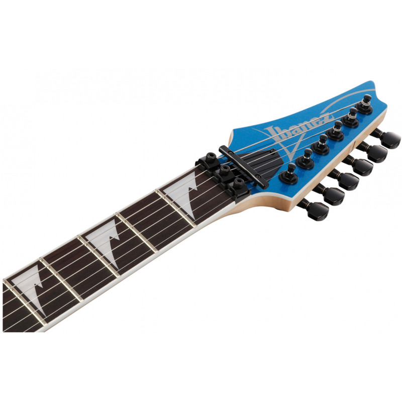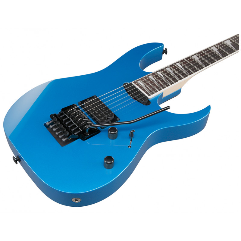 Ibanez RG565R-EB – електрогітара з корпусом із липи, представлена в яскравому кольорі Electric Blue. Корпус із липи відрізняється легкістю та формує природний, збалансований тон, який добре розкривається як у чистому звуку, так і при перевантаженні.