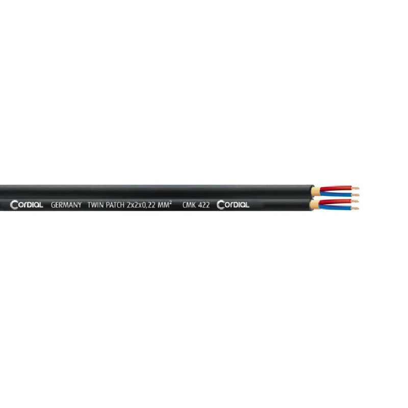 Cordial CMK 422 2x2x0,22 - професійний подвійний мікрофонний кабель, який часто використовується, наприклад, у студіях для підключення мікшерних пультів, підсилювачів потужності та ефектів, а також для монтажу в стійках. Цей подвійний кабель має перетин провідника 0,22 мм² (AWG 24) і є досить тонким, а тому дуже гнучким. Його 2 x 2 пари струнких провідників екрановані спіральним екраном. Зовнішня оболонка кабелю складається з міцного ПВХ.