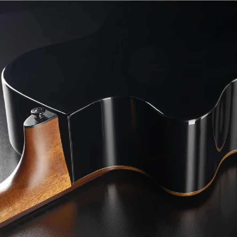 Глянцеве чорне покриття з контрастною фаскою з червоного дерева