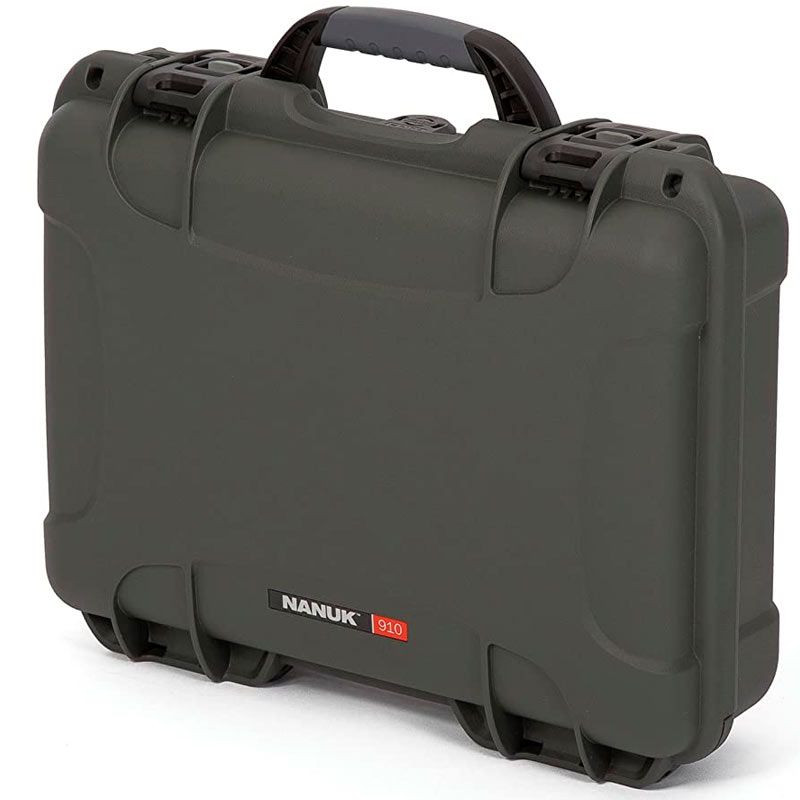 Кейс виготовлений з ударостійкоїполімерної смоли NK-7 з опорними вузлами з нержавіючої сталі і посиленими кутами. Nanuk 910 комплектується міцною складною ручкою, вбудованим клапаном регулювання тиску, внутрішньою вставкою з м'якого антистатического поролону і має внутрішній неопреновий ущільнювач, який забезпечує повну герметичність і водонепроникність кейса і гарантовано захищає його вміст від пилу, бруду, вологи і підсилює захист речей всередині від механічних пошкоджень при ударах і падіннях.
