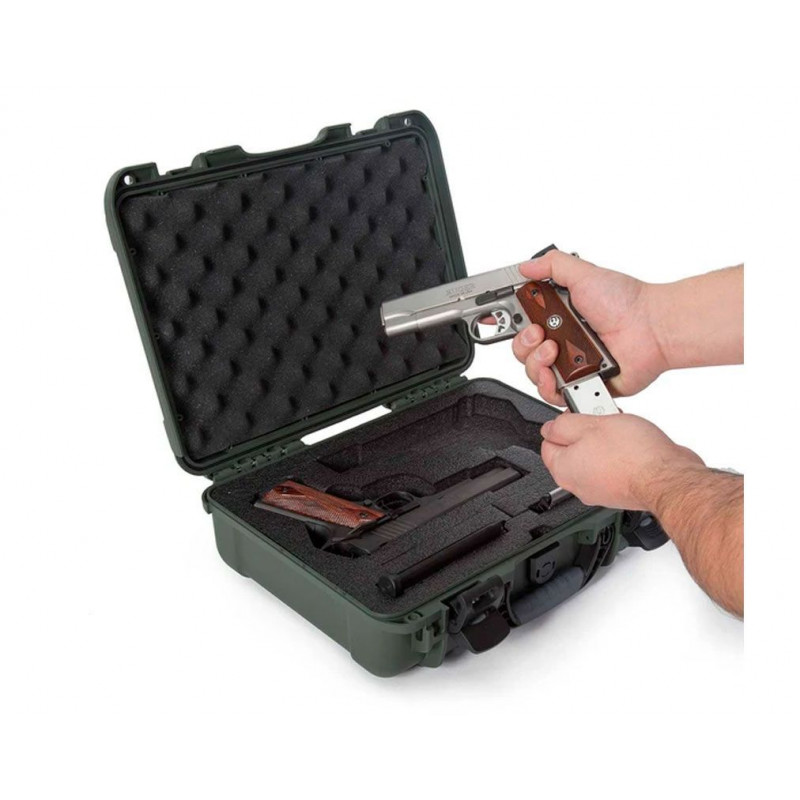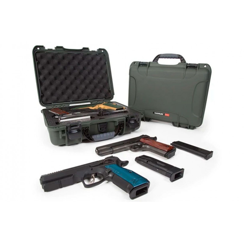Захисний кейс для пістолета (-тів) Nanuk 910 (Olive) Classic Gun підходить для роботи зі зброєю в будь-якому середовищі. Ступінь захисту IP67. Made in Canada. Забезпечує надійне зберігання багатьох популярних моделей, також передбачено місце для двох одинарних магазинів або одного подвійного. У підготовленому ложементі для пістолета поміщається 2 пістолета з блокуванням спускового гачка, а також модель рукояткою-накладкою типу "beavertail". Відкривання кейса можна заблокувати за допомогою двох вбудованих і посилених вушок (сталеві втулки), що дозволяють надійно зберігати і транспортувати пістолет. Кейс буде надійно захищати від механічних пошкоджень, вологи і екстремальної температури.