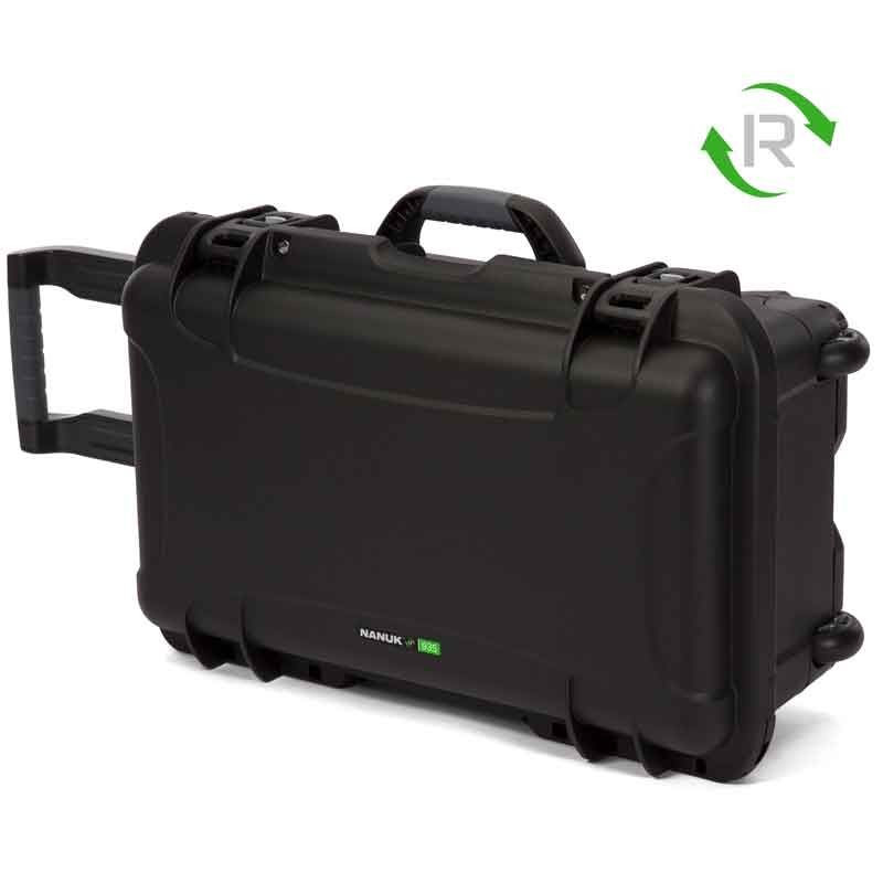 Nanuk 935R (Black) - захисний кейс, без наповнювача. Серія Nanuk-R виготовлена із переробленої смоли. Ступінь захисту IP67. Made in Canada. Екологічна серія Nanuk-R, яка поєднує інновації з екологічною відповідальністю, містить 80% переробленої смоли, що забезпечує більшу довговічність, надійність і функціональність. Для підвищення безпеки лінійка из переробленої смоли (до рочі як і звичайні моделі) обладнана інтегрованою ергономічною м’якою рукояткою, автоматичним клапаном скидання тиску та спеціальним механізмом блокування та замикання.