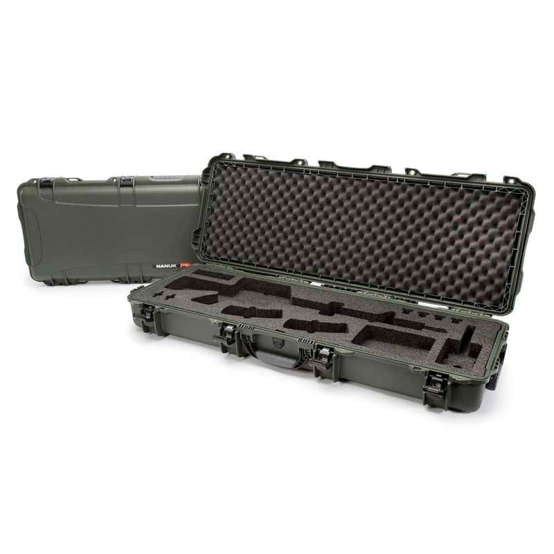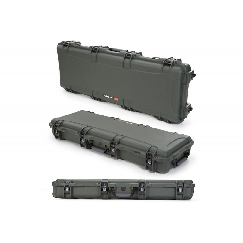 Кейс для зброї Nanuk 990 (Olive) Foam AR - якщо точніше під гвинтівки типу AR 15. У парапластовому наповнювачі нарізана спеціальна форма під гвинтівку, і 8 магазинів, також передбачені місця для зберігання і розміщення популярних аксесуарів гвинтівки типу AR 15 і два спеціальних слота для вологопоглиначів. У всьому іншому цей кейс зроблений за формою звичайного Nanuk 990.