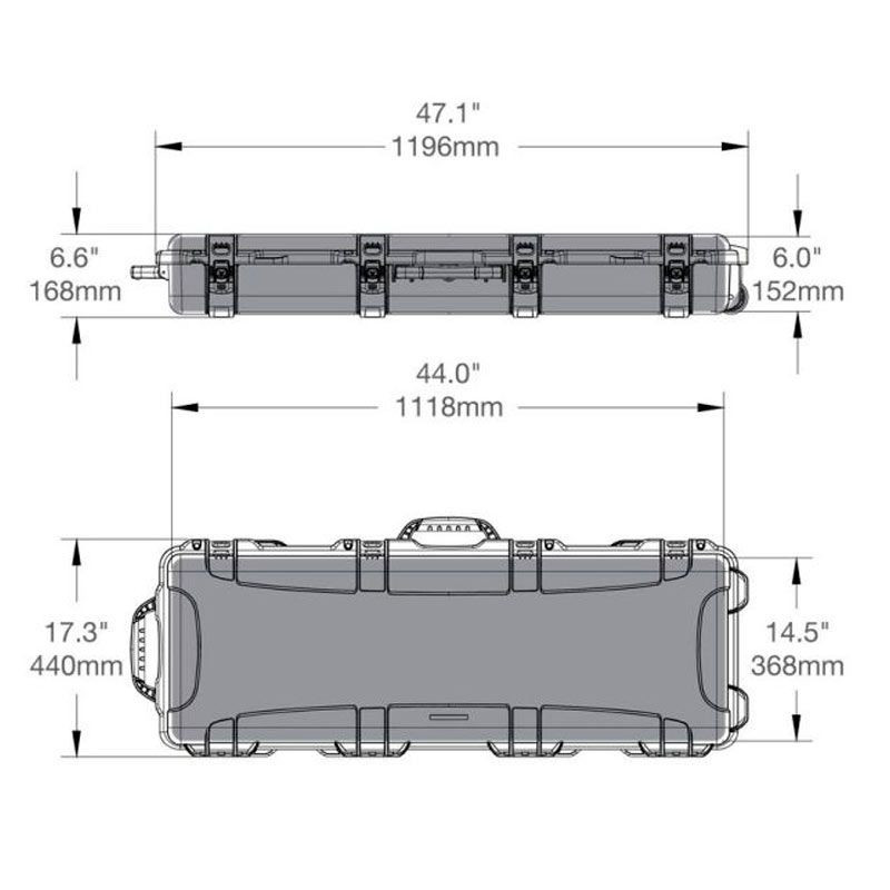 - Корпус виготовлений з ударостійкого полімеру NK-7, легкий, але надзвичайно міцний і довговічний матеріал, який має здатність ефективно поглинати удари і в поєднанні зі спеціально розробленою конструкцією кейса (закруглені кути, посилені стінки з виступаючими ребрами жорсткості тощо) забезпечує цілісність і герметичність кейса при найжорсткіших навантаженнях.