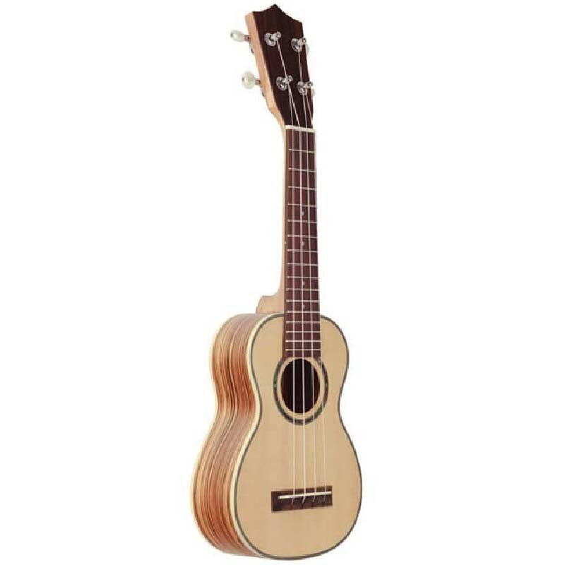 Prima M320S Soprano Ukulele (Solid Spruce/Zebrawood) - укулеле (сопрано), задня дека та обичайки укулеле зроблені з дерева зебрано (zebrawood).