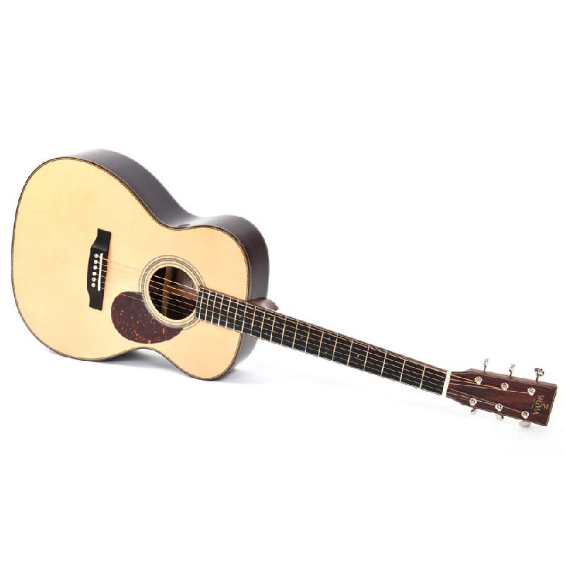 Sigma SOMR-35HM Limited - акустична гітара, лімітована модель і рідкісний інструмент випущений тиражем у всього 72 одиниці на весь світ, створений для знавців. Вона звучить багато і виглядає, як музейний експонат — преміальна майстрова гітара з топ-сегменту. Форма 000 із 14 ладами поза корпусом — золота середина для музикантів, які шукають чисту атаку, швидкий відгук і максимальну деталізацію. Ідеальний інструмент для фінгерстайлу, але при цьому з достатнім об'ємом, щоб тримати акомпанемент. Компромісів тут немає — все тільки топового класу.
