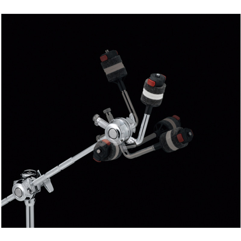 Стійка оснащена тримачем для тома з поворотним крилом та системою нахилу Orbital Quick-Tite, яка дозволяє точно та швидко регулювати положення як тома, так і тарілки. Шарнірне з'єднання Glide-Tite забезпечує жорстку фіксацію елементів без втрат у передачі вібрацій, а звукоізоляція True-Sound зберігає чистоту звучання барабанів та тарілок.