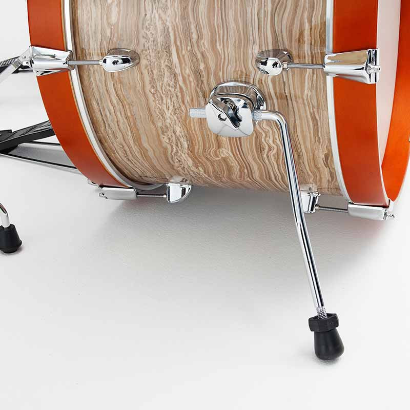 Особливості комплекту Club-JAM Установка запозичує елементи вінтажного дизайну: тримач тарілок монтується безпосередньо на корпус бас-барабана, а вигнуті ніжки забезпечують стійкість та зручність розташування на сцені. Дерев'яний обруч бас-барабана підвищує контроль над звучанням та резонансом, забезпечуючи яскраве та чисте низькочастотне звучання.