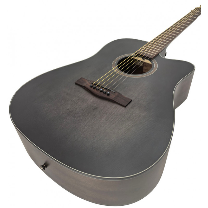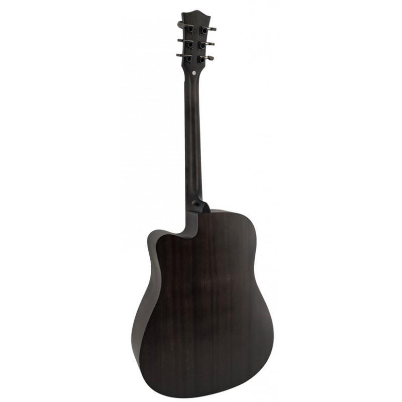 Корпус гітари виконаний за класичною схемою: верхня дека з масиву ялини забезпечує яскраву атаку та чітку артикуляцію кожної ноти. Задня дека та боковини з ламінату червоного дерева додають теплоти в середніх частотах та створюють збалансоване звучання. Накладка грифа з палісандра не тільки надає інструменту благородного вигляду, але й забезпечує плавне ковзання пальців по ладах. Матове покриття захищає деревину від пошкоджень та підкреслює природну текстуру дерева.