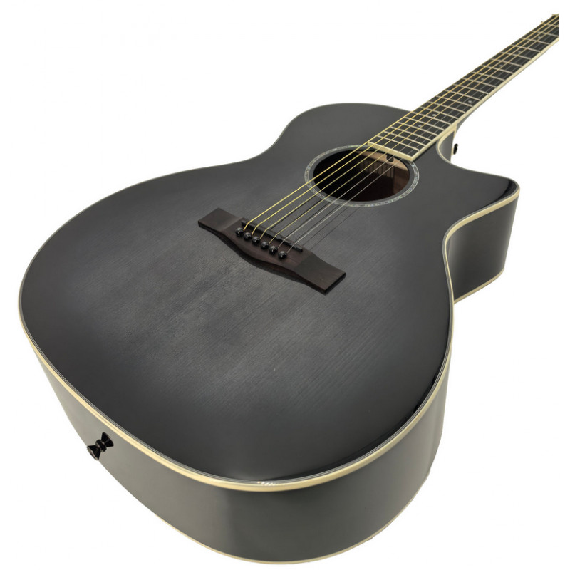 Верхня дека інструменту виготовлена з масиву ялинки, що надає звучанню чистоти, яскравості та об'єму. Це дозволяє гітарі видавати насичені обертони, що добре резотуються, роблячи кожну ноту виразною. Задня і бічні деки з махагону, що ламінують, додають звучанню теплоти і глибини, створюючи збалансований тон, що підходить для різних музичних стилів.