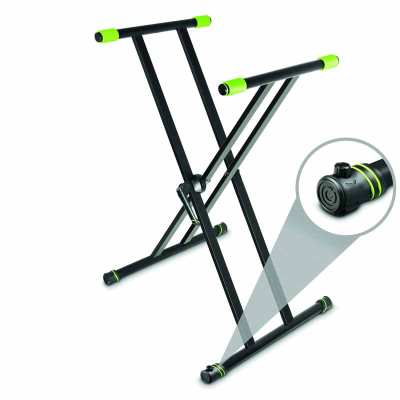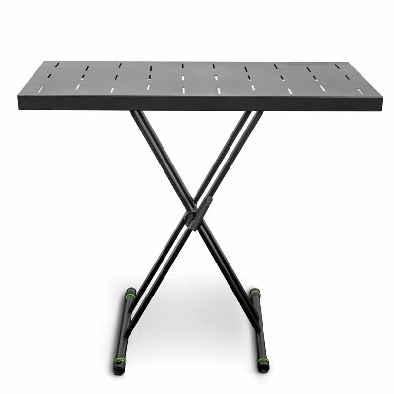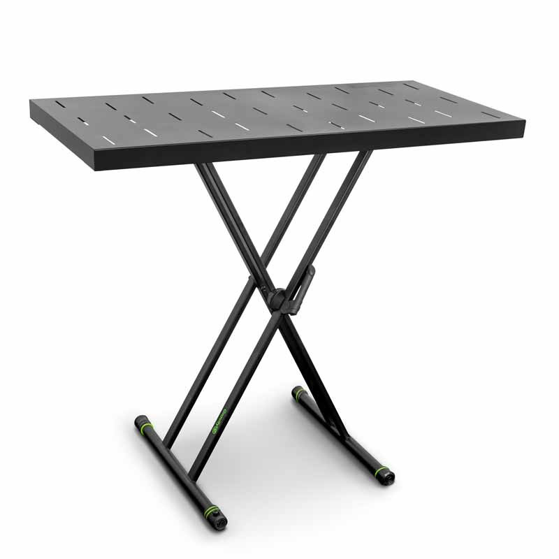 Gravity KSX 2 RD – стойка-стол, функциональные возможности которой значительно больше обычной клавишной стойки. Плоская поверхность это полноценный мобильный стол, который позволит с комфортом работать в любом месте. На большой поверхности (ширина 1000 мм и глубина 480 мм) достаточно места для размещения ноутбука, DJ-микшера, контроллера или даже небольшого рекового синтезатора.